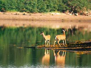 Photo: M. MüllerDirekt gegenüber vom Haus sind häufiger Weißwedelhirsche zu beobachten, die sich dort versammeln und gelegentlich auch quer durch den Fluß an das gegenüberliegende Ufer schwimmen!