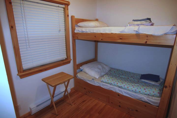 das kleinere Zimmer unten mit Etagenbett, auch für Erwachsene geeignet