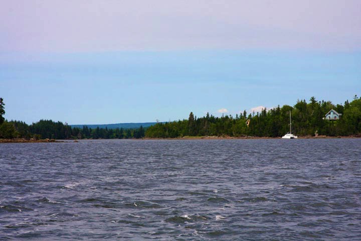 Yellownose links und Segelkatamaran vor dem Bluenose Haus